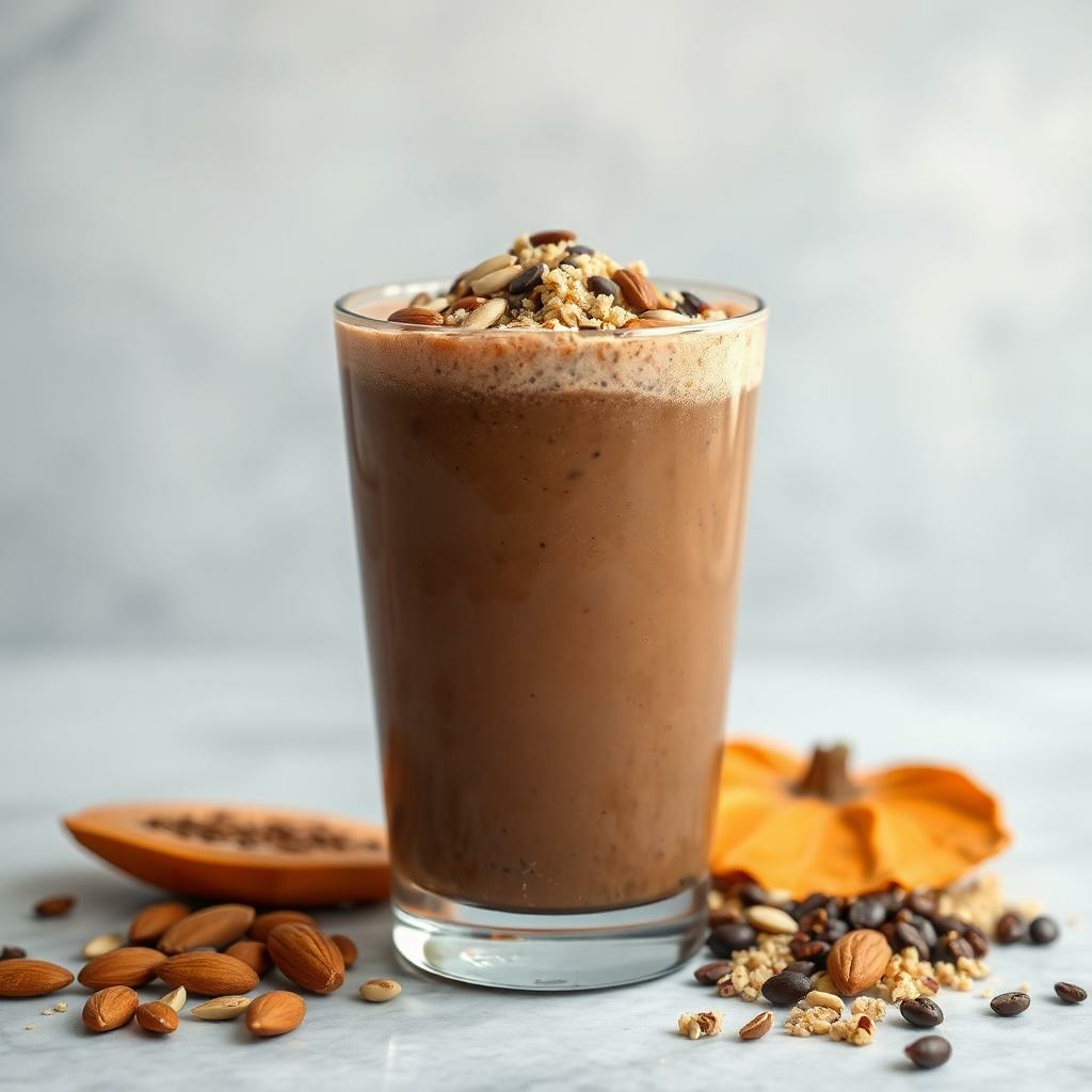 Wsyp kakao do rondelka i dokładnie wymieszaj z mlekiem. Dodaj do kakao pestki dyni, migdały, ugotowaną komosę ryżową i czarną fasolę. Wymieszaj.