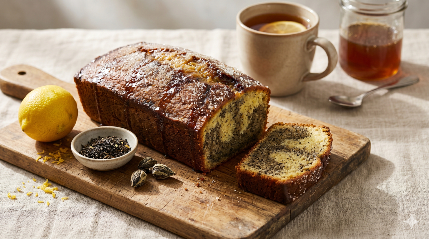 Zaparz bardzo mocną herbatę w 80 ml wody (5 minut), wyciśnij saszetki, dodaj miód i gotuj w rondelku do lekkiego zgęstnienia. Na koniec dodaj sok z cytryny. Ciepłe ciasto nakłuj patyczkiem i polej połową syropu. Posyp odłożonym cukrem cytrynowym. Podawaj z kleksem kwaśnej śmietany, z wgłębieniem wypełnionym resztą syropu.