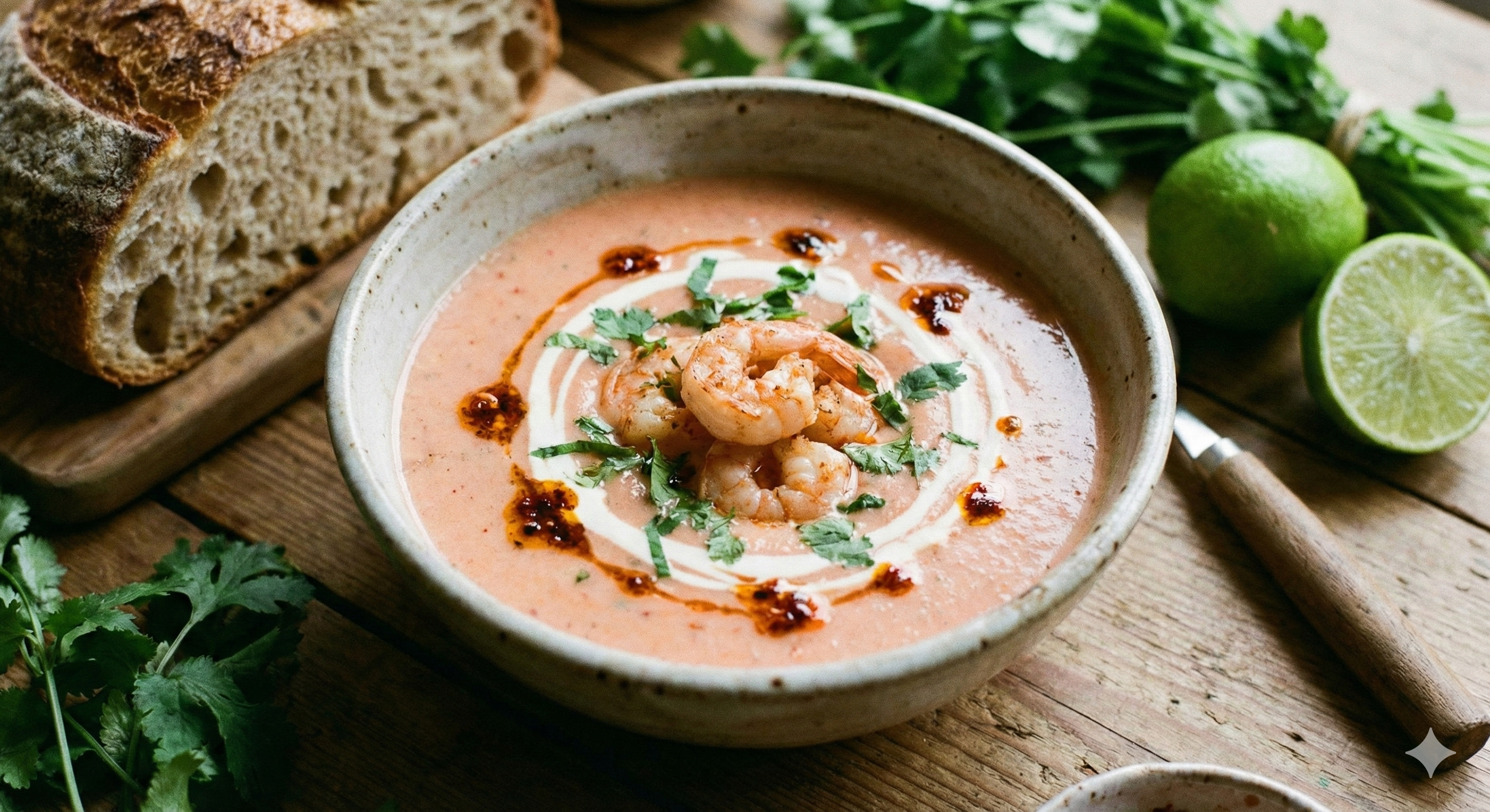 Przepięknie prezentuje się na talerzu i wybornie smakuje. Czerwona zupa z krewetkami to zupa na bazie buraczków, z dodatkiem śmietanki. Idealna na ważne uroczystości.