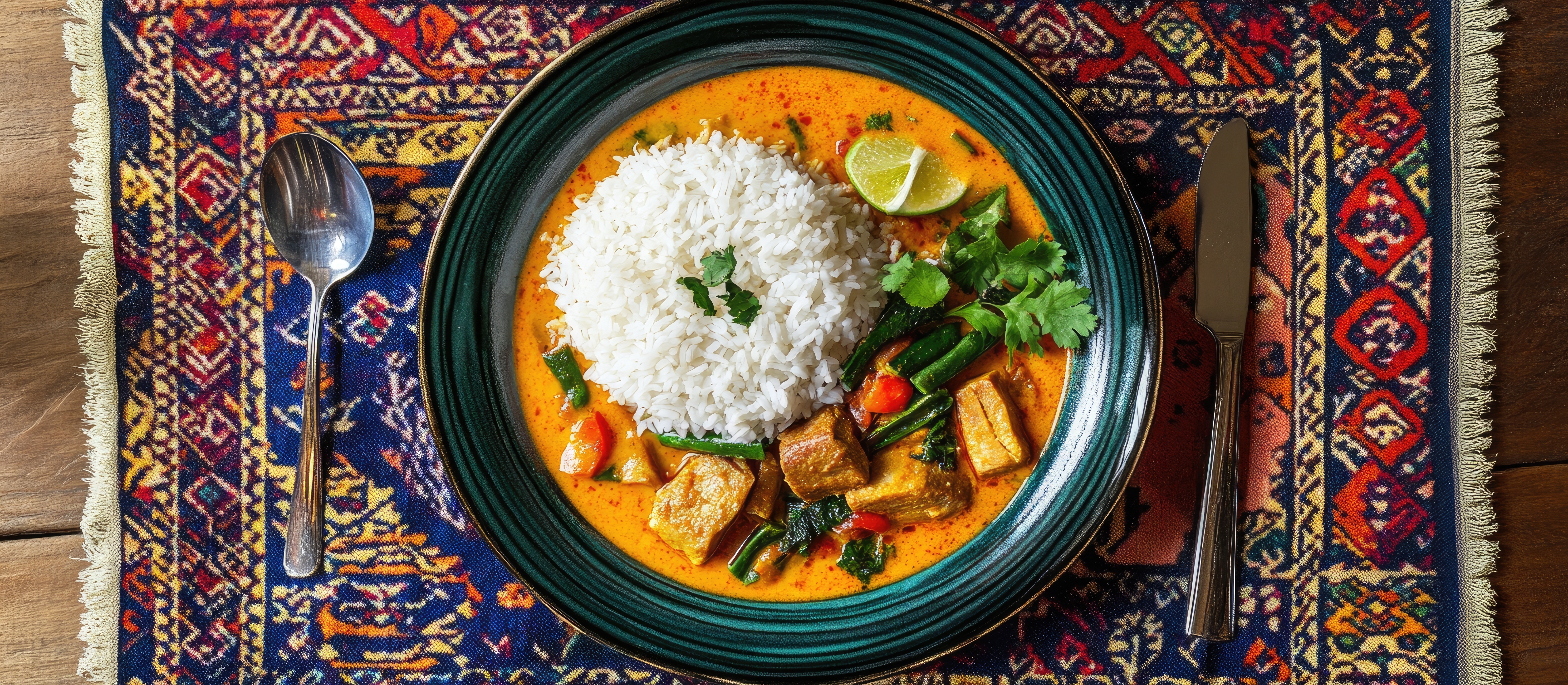 Dodaj na patelnię mięso i duś kaczkę do momentu, gdy mięso będzie miękkie i delikatne. Dodaj owoce lychee, liście limety kaffie, cukier palmowy lub trzcinowy oraz sos rybny. Smaż kolejne 4 minuty. Podaj danie z ryżem jaśminowym i przybrane bazylią.