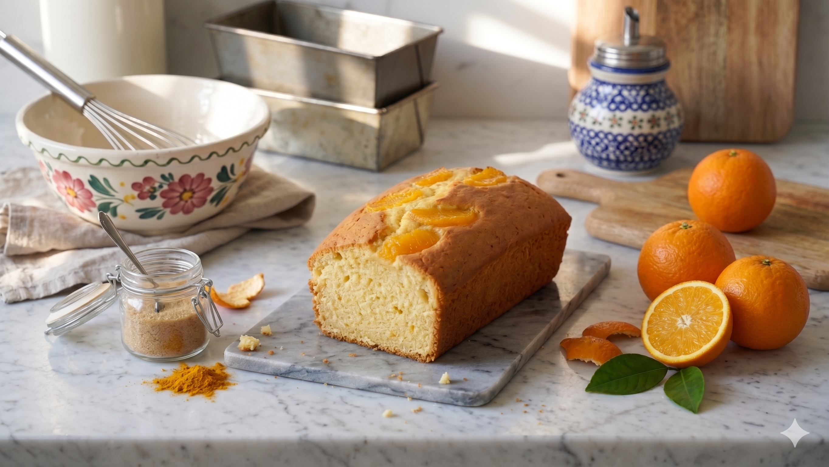 Gotową masę przelej do keksówki wyłożonej papierem do pieczenia lub wysmarowanej tłuszczem. Na wierzchu możesz ułożyć kilka plastrów pomarańczy dla ozdoby. Wstaw do nagrzanego piekarnika (ok. 180°C) i piecz przez około 45-55 minut (do tzw. „suchego patyczka”).